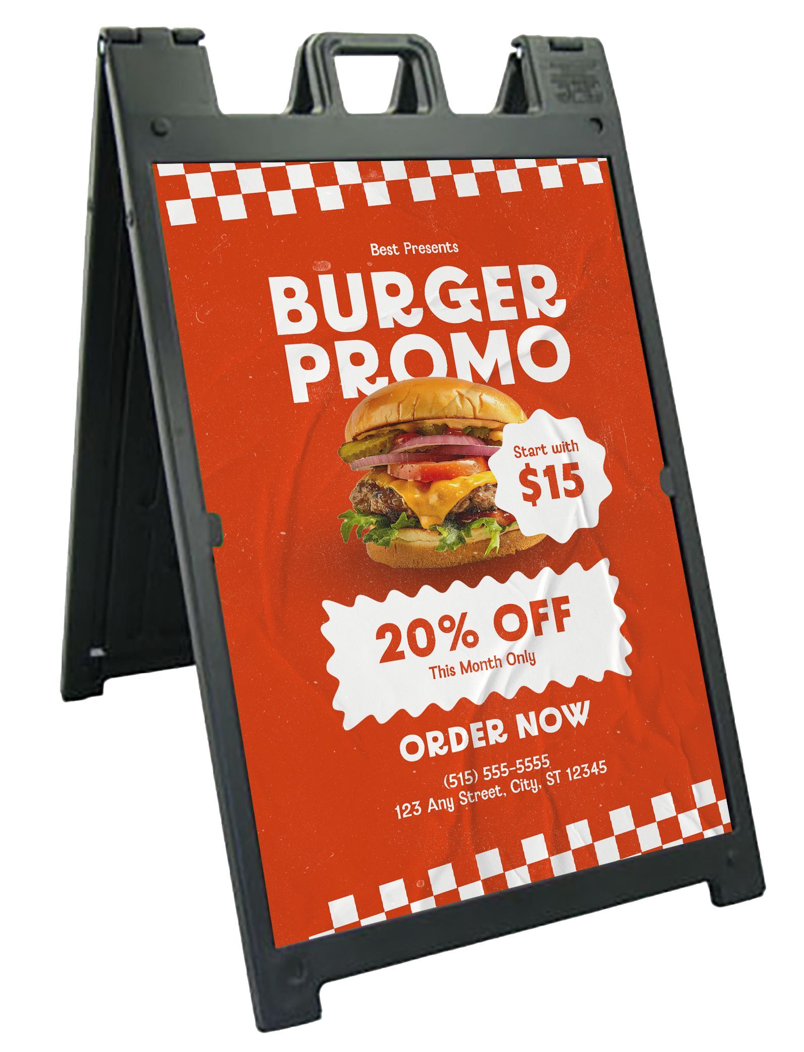 Lightweight yet sturdy, each sandwich board weighs just 20 lbs for stability The graphic corrugate panels feature full-color digital UV printing for vibrant, weather-resistant visuals that stay bright in any setting. Move it easily with the built-in top handle, and customize your sign with one or two printed panels, your artwork, or our professional design help.